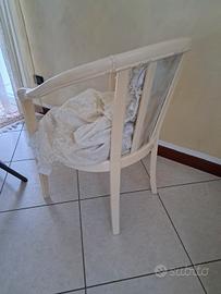 sedia da camera con bambola i ceramica vestita con pizzo.