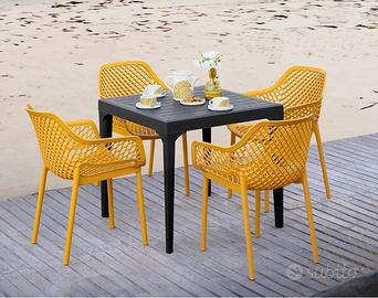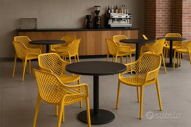 Sedia monoblocco impilabile, in polipropilene e fibra di vetro. Con tappi antiscivolo. Finitura . Versatile, adatta ad uso interno ed esterno per bar ristorante lido giardino