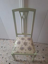 sedia in legno verde con copertura fatta dalla sarta