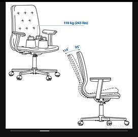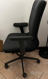 Sedia con rotelle da ufficio, colore grigio scuro, come nuova, perfetta, usata pochissimo.