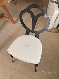 Sedia in metallo e imbottitura in ecopelle. Dimensioni circa 50x50x90h cm. Leggera imperfezione sulla palle al centro della seduta (come si vede in foto). Non spedisco.