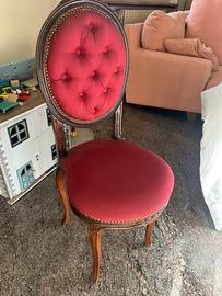 Stile antico con schienale a palloncino, colore rosso/bordeaux . Stile vittoriano e struttura in legno intagliato.