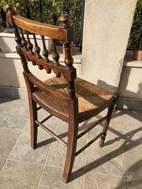 Sedia d'epoca artigianale in legno di noce con seduta impagliata, compreso cuscino. Consegna a mano Roma / Eur.