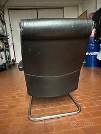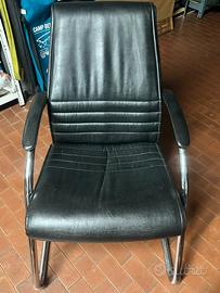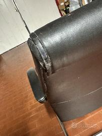 Vendo sedia d’ufficio degli anni 80 in pelle. Esattamente come si vede in foto. Misura : Schienale 56 Seduta 47 larga 50 57 da bracciolo a bracciolo
