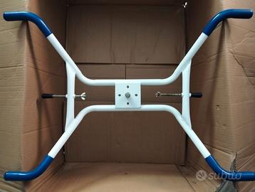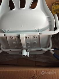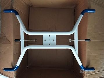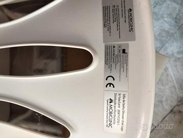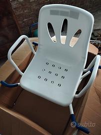 Sedia da bagno girevole Mobiclinic Lago con braccioli e schienale girevole a 360° anatomica impermeabile. Si adatta alla vasca da bagno con notevole tolleranza di dimensioni e risulta assai pratica per coadiuvare anziani e disabili. Come nuova, usata solo qualche volta e perfettamente conservata nel suo imballaggio originale.