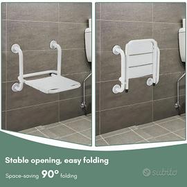 Seggiolino da bagno pieghevole e ribaltabile in verticale a 90° per doccia, sedile da bagno fino a 120 kg, sedile da doccia, montaggio a parete, sedile da bagno in acciaio inossidabile