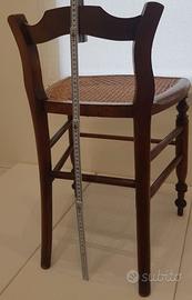 sedia bassa da allattamento in legno e vimini, fine '800, di provenienza francese; sedile di forma sagomata che si allarga anteriormente (cm.40); seduta in paglia di Vienna in buono stato di conservazione.