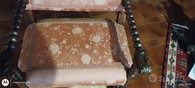 Caratteristiche: Braccioli intagliati e seduta imbottita con motivi floreali