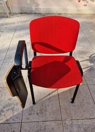 Sedia impilabile in tessuto, imbottita, con ribaltina scrittoio per studio, sala conferenza, convegni. Colore rosso, telaio in metallo nero