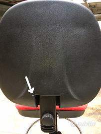 Vendo sedia da disegnatore con sedile e schienale imbottiti e rivestiti in tessuto acrilico rosso. Regolazioni meccaniche per altezza e profondità dello schienale. Altezza sedile regolabile con alzata a gas rivestita da soffietto telescopico. Poggiapiedi cromato regolabile in altezza. Base a 5 razze in nylon..