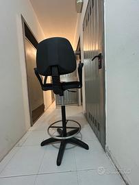 Sedia da ufficio alta a pistone , altezza e schienale regolabili. Adatta per tavolo da disegno tecnico. Imbottitura in ottimo stato. Priva di diffetti