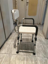 Vendo sedia professionale per doccia/bagno, ideale per persone anziane o con mobilità ridotta. Il modello è completo di schienale e braccioli imbottiti per garantire il massimo comfort e sicurezza durante l'igiene personale.