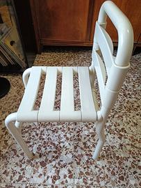 Sedia da doccia con doghe antiscivolo per anziani o disabili. Robusta e resistente. Usata ma ancora in ottime condizioni. Misure: altezza 80, larghezza 30, lunghezza 40 Ritiro a Milano