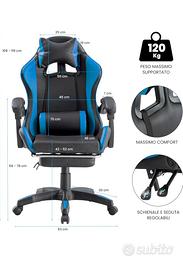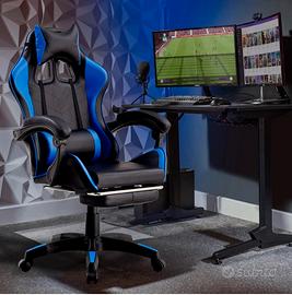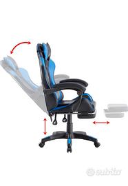 Sedia da Gaming Racing Ergonomica Reclinabile con Braccioli, Poltrona Ufficio Girevole con Rotelle, Poggiapiedi, Poggiatesta e Cuscino Lombare in Similpelle, Portata: 125kg (Blu)