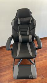 Sedia da Ufficio, Poltrona Racing Ergonomica, Poggiapiedi Telescopico, Schienale Inclinabile, Poggiatesta e Supporto Lombare, Portante di 150 kg,