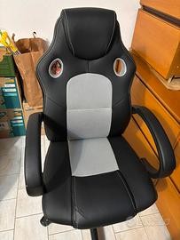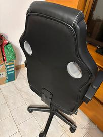 Sedia da gaming o per postazione casalinga da lavoro ufficio In buone condizioni; piccolo difetto sul bracciolo destro visbile in foto