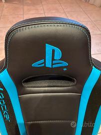 X-Rocker Sedia da gioco con licenza ufficiale PlayStation Geist 2.0, comoda seduta pieghevole da pavimento con altoparlanti, pelle PU per PS4, PS5, PC, cellulare, nero/blu.