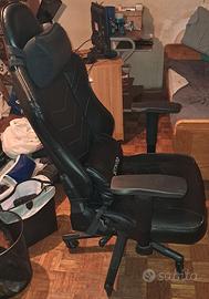 Sedia da gaming SITMOD già montata, usata, similpelle, regolabile in altezza, reclinabile da 90 a 180 gradi, braccioli regolabili in altezza, poggia piedi estraibile.
