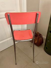 La sedia presenta un telaio in metallo, e la/lo seduta/schienale in melammina color rosa bubble gum.