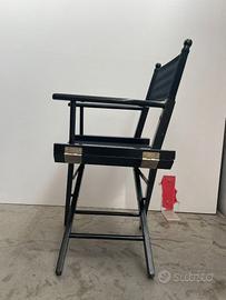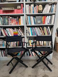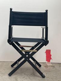 Bellissime sedie da regista in legno di faggio verniciato nero, Made in Italy, pieghevoli e robuste. Si appiattisce occupando un minimo ingombro.