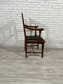 Sedia da scrivania anni '50 in legno massello, con braccioli e seduta in pelle nera con borchie.