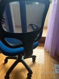 Sedia per scrivania blu, in perfetge condizioni, regolabile in altezza e con rotelle. In ottime condizioni