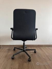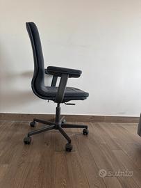Sedia da scrivania con rotelle e braccioli. Colore grigio scuro. Perfette condizioni.