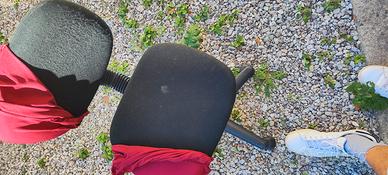 Sedia in tessuto nero da scrivania comoda. Non alta per persone di statura media. Schienale e alzata verticale regolabile manualmente. Buone condizioni con piccola macchia forse rimovibile nella seduta. Completa di rivestimento rosso bordeaux