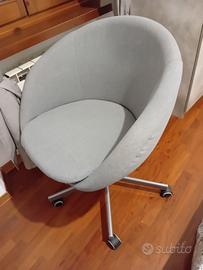 Sedia da scrivania girevole, Ikea Skruvsta, grigia in tessuto con ruote, come nuova, vendo per cambio arredamento