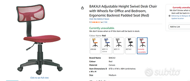 Sedia da scrivania girevole Colore: rosa Altezza regolabile.Come nuova. Prezzo originale: 39.90 €