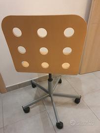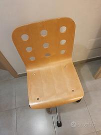 Vendo sedia da scrivania usata Ikea. Sedile in legno regolabile in altezza e ammortizzato. Base con 5 razze e rotelle. Ideale per camera ragazzi. Leggermente scheggiata sullo schienale.