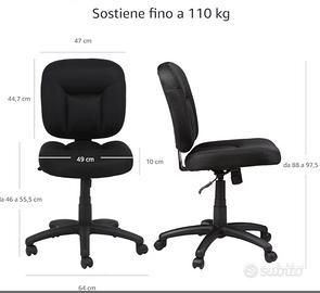 Sedia da ufficio, da scrivania, con schienale imbottito, comoda per la schiena, altezza regolabile
