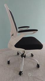Sedia, da scrivania/ufficio con rotelle, schienale in rete traspirante, ergonomica, supporto lombare imbottito, oscillante, seduta 53 cm, braccioli pieghevoli. Acquistata Marzo 2025. Consegna diretta non spedisco.