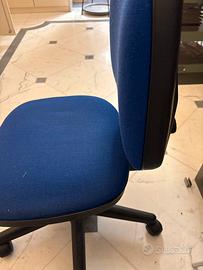 Vendo sedia da ufficio operativa color blu elettrico, perfetta per chi cerca una seduta funzionale senza troppi fronzoli. La sedia è molto stabile e strutturalmente solida. Caratteristiche principali: • Meccanismo di elevazione: Perfettamente funzionante (regolazione dell'altezza fluida). • Base: A 5 razze con rotelle piroettanti per un facile spostamento. • Schienale: Regolabile in altezza/profondità tramite le manopole posteriori. Condizioni dell'usato: La sedia presenta alcuni segni di usura dovuti all'utilizzo (visibili qualche graffio sulle plastiche e residui di pelucchi/polvere sul tessuto, come da foto). Tuttavia, non presenta rotture strutturali e fa ancora egregiamente il suo dovere. Una veloce passata con una spazzola adesiva o un aspirapolvere la farà tornare in ottima forma!