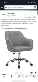 Vendo sedia da ufficio in ottime condizioni, acquistata un paio di mesi fa su amazon. Prezzo di acquisto 85€, regolabile in altezza.