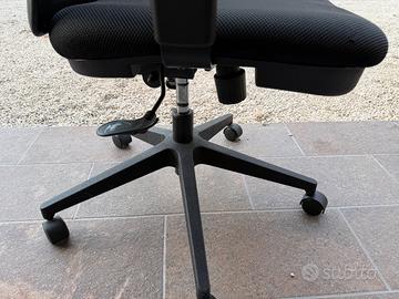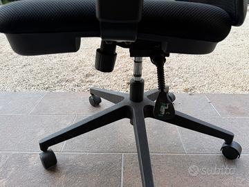 Vendo sedia da ufficio con braccioli, funzionante e in buono stato. Possibilità di regolazione in altezza e reclinazione. I braccioli sono regolabili. Incluso supporto lombare. Ritiro solo a mano.