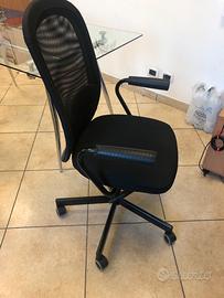 Sedia da ufficio con braccioli. Buono stato . Schienale alto, reclinabile. Braccioli destro un po usurato ma non crea nessun problema