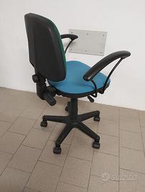 Sedia da ufficio con rotelle, schienale regolabile e altezza regolabile.