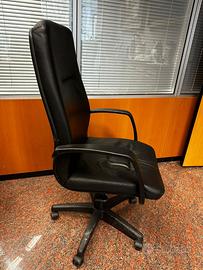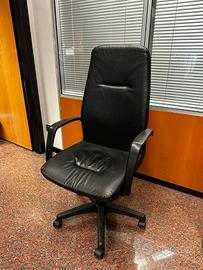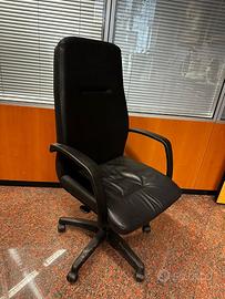 Sedia da ufficio con ruote e braccioli regolabile in pelle nera. Disponibili nr. 11 pezzi per trasloco ufficio. Prezzo cadauna € 60.00.