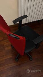 Vendo sedia da ufficio girevole con ruote. Schienale in rete rossa, struttura nera con braccioli. La sedia è stabile e funzionante, ma la seduta presenta segni di usura e il rivestimento è rovinato (come da foto). Ritiro Monza