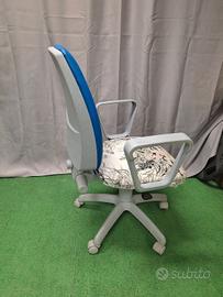 Vendo sedia da ufficio blu con ruote, altezza regolabile e schienale reclinabile con molla per un buon supporto alla schiena.