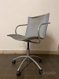 Sedia da Ufficio di design, vintage Ikea, colore grigio chiaro. Ottime condizioni, nessun difetto. Struttura in tubolare di metallo con ruote, base a con 5 piedi, seduta in rete telata sfoderabile per la pulizia. Ritiro in zona Romito/Statuto.