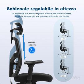 Sedia da ufficio ergonomica, poltrona da ufficio con braccioli regolabili Poggiatesta e supporto lombare dinamico, regolazione in altezza e funzione ribaltabile