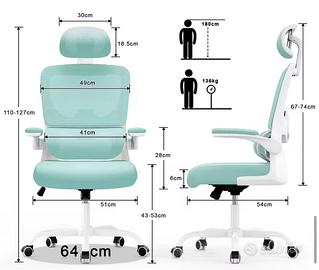 Vendo sedia da ufficio ergonomica con braccioli, regolazione in altezza, girevole e traspirante.
