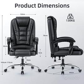 【Angolo di Inclinazione Flessibile】 La sedia ergonomica può essere regolata verso l'alto o verso il basso di 10 cm, da 105 a 115 cm, per impostare l'altezza ottimale per te. Lo schienale reclinabile a 135° e la funzione di reclinazione bloccabile ti consentono di fare un pisolino sicuro e confortevole dopo una dura giornata di lavoro.