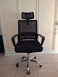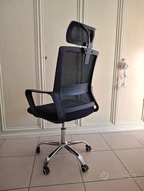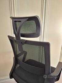 Sedia girevole direzionale ergonomica con poggiatesta, supporto lombare e rotelle. Sedia per computer, da gioco, da ufficio. Come nuova. Consegna a mano, già montata come da foto.