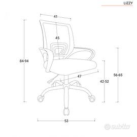 La sinergia tra l'imbottitura in tessuto mesh, i comodi braccioli e lo schienale traspirante permette alla sedie Lizzy di essere la sedia più versatile in qualsiasi ambiente e anche nei mesi più caldi dell'anno. Il supporto lombare fornisce sostegno alla schiena garantendo una corretta postura e la leva posta sotto la seduta permette di regolarne l’altezza.