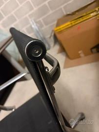 Vendo sedia da ufficio girevole in stile Herman Miller, con struttura in metallo cromato e seduta/schienale in rete traspirante nera. Design elegante e professionale, ideale per ufficio o studio.