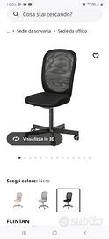 Vendo Sedia da ufficio IKEA FLINTAN (nera). La sedia è in condizioni ottime. E ' stata usata ma trattata con cura. Le molteplici funzioni di cui è dotata sono tutte funzionanti. Nessuno strappo e nessuna macchia. Seduta integra come da foto. Questa sedia ergonomica per l’ufficio ha tante funzioni che le permettono di adattarsi facilmente al tuo corpo. Supporto lombare: facilita il mantenimento di una corretta posizione e riduce la tensione sulla parte inferiore della schiena. Meccanismo d'inclinazione automatico: regola la resistenza dello schienale in base al peso del corpo. Meccanismo d'inclinazione sincronizzato: si muove con te quando fai pressione all'indietro per liberare i fianchi e il torso e migliorare la circolazione e l'energia. Blocco dell'inclinazione: blocca la sedia in posizione verticale. Sedile regolabile: per trovare una posizione comoda indipendentemente dalla tua altezza. Lavabile: rimuovi le fodere per rendere più semplice la pulizia e mantenere la sedia sempre come nuova. Funzione di sicurezza: le rotelle si bloccano quando non usi la sedia per mantenerla al suo posto. Sono disponibili i braccioli, venduti a parte, per alleviare la tensione sulle braccia e sulle spalle. Profondità: 71 cm Altezza massima: 114 cm Altezza massima sedile: 58 cm Altezza minima sedile: 45 cm Profondità sedile: 49 cm Larghezza sedile: 46 cm Testato per: 110 kg Larghezza: 71 cm