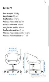 Sedia da ufficio IKEA Skruvsta, in ecopelle bianca, girevole, altezza e inclinazione regolabili, perfettamente funzionante pari al nuovo. Ritiro in loco. Spese di spedizione da confermare in base alla destinazione e preventivo corrieri.
